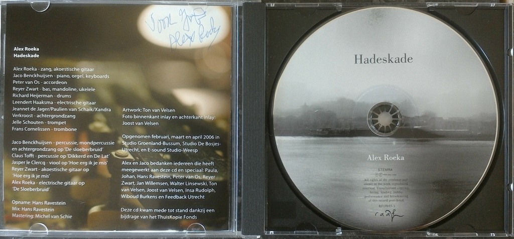 Voor het weekblad De Noordoostpolder heb ik Roeka ook gerecenseerd, vermoedelijk in een Cabarestafette-aflevering in 2008. Wanneer ik zijn cd 'Hadeskade' in bezit kreeg, weet ik niet meer: bij Salon Saffier (de cd dateert uit 2006) of in theater 't Voorhuys in Emmeloord.