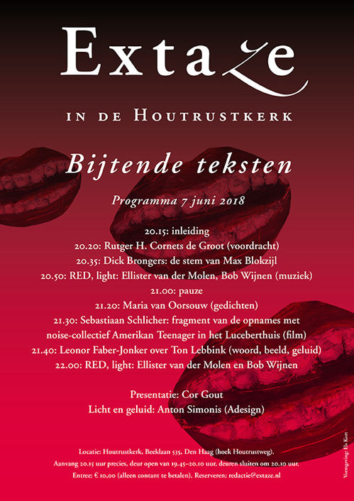 Leonor Faber-Jonker herinnert zich anekdotes, woordgrapjes, associaties en uitspraken, vaak over taal (‘eenvoud is macht’) van popdichter, punkdrummer en iconoclast Ton Lebbink, en herinnert zich haar eigen ‘bekering’ tot de punk: ‘De venijnige teksten van de Vibrators, The Stranglers en de Buzzcocks gaven me hetzelfde bevrijdende gevoel als de humor van de VPRO, het dragen van wijde zilveren broeken
