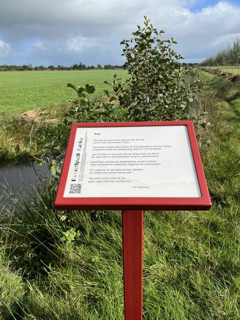 Op 21 oktober is tijdens een druk bezochte bijeenkomst de inmiddels vierde editie van de Aldegeaster poëzieroute geopend. Het Dichterspaad Aldegea (Oudega) is een wandel- en fietsroute van zo’n 25 kilometer in een prachtig en historisch interessant gebied. Van de 85 ingezonden en anoniem beoordeelde gedichten zijn er 17 opgenomen (13 in het Fries en 4 in het Nederlands). De dichters zijn: Aukje-Tjtiske, Suzan Bosch, Yttje Cnossen, Job Degenaar, Arjan Hut, Jan Ketelaar, Lara Kool-de Vries, Jurjen van der Meer, Henk Moltmaker, Reina&Greetje, Wil Stelling, Elbrich Vreeling, Syds Wiersma, Harm Woelinga en Carla van der Zwaag. De commissie (Karen Bies, Antsje Mud, Michiel de Wal, Hindrik van der Zee en Meindert de Boer) heeft er een flinke klus aan gehad, ook met de uitwerking ervan. Van Degenaar zijn de gedichten 'Zomerlessen' en 'Weg' opgenomen.