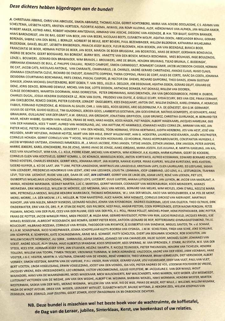 Dit prachtige boek, waarin ruim 900 gedichten zijn opgenomen, is een ode aan leerlingen, klassen ondersteuners, schoolhoofden, onderwijsinspecteurs en natuurlijk al die geweldige leraren. En het is een aanrader voor iedereen die het onderwijs een warm hart toedraagt.