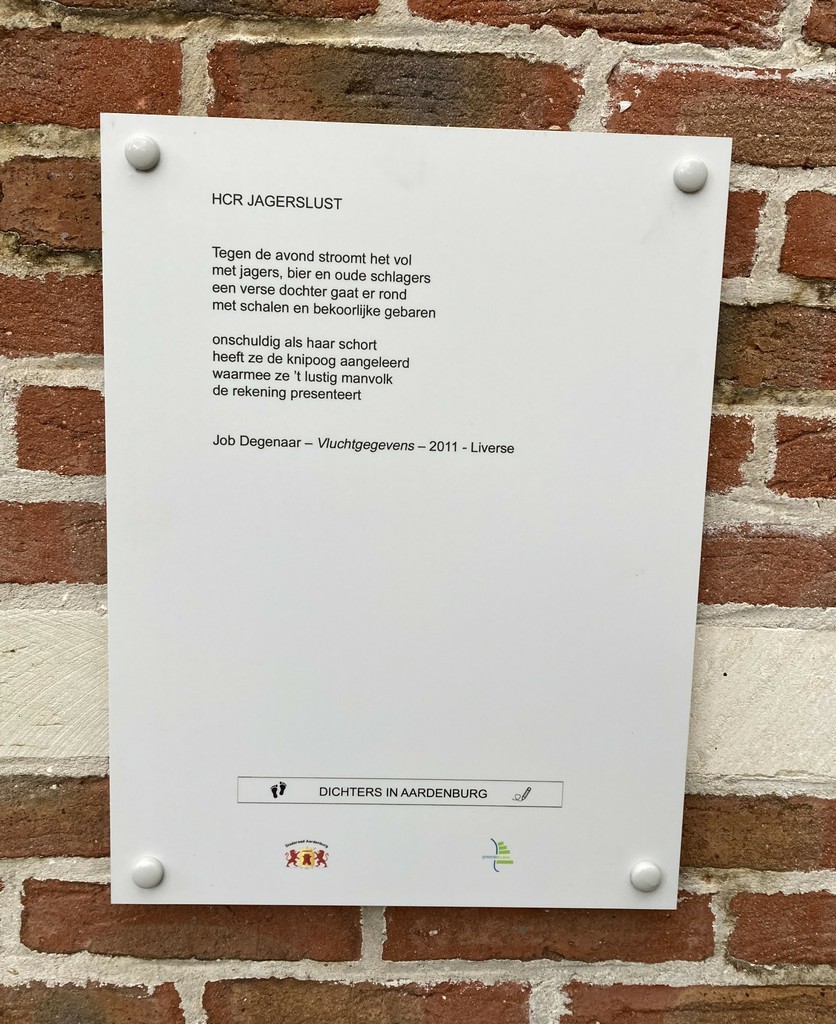 In Aardenburg is op 5 april een nieuwe poëziewandelroute geopend. Degenaars bijdrage (zie foto) is te vinden op de deur van een voormalige herberg, Rudanna Castra, Markt 2. Voor meer informatie over de route: https://stadsraadaardenburg.nl/laatste-nieuws-3/