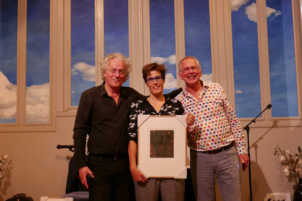De Plantage Poëzieprijs 2018 is gewonnen door Saskia van Leendert met haar gedicht 'Het kind in ons'. Dat werd gisteren bekend gemaakt op een feestelijke bijeenkomst vol poëzie, muziek, zang en dans in de Tangosalon in Amsterdam. Op de foto wordt Saskia geflankeerd door juryvoorzitter Cees van Ede (l) en mede-organisator Jos van Hest (r). De andere genomineerden waren Sara De Lodder en Enno Paulusma.